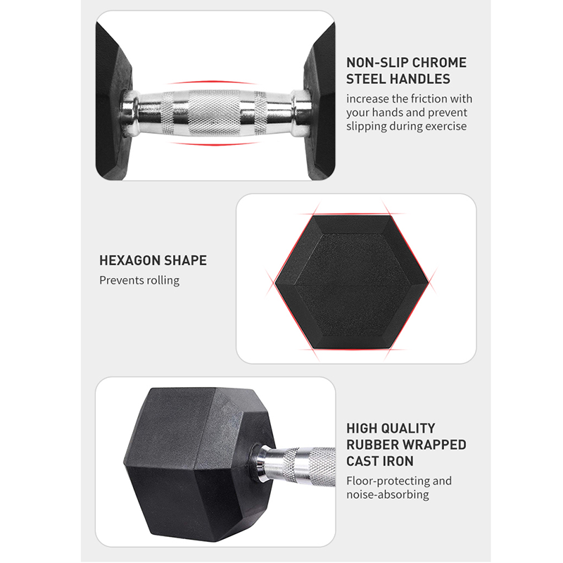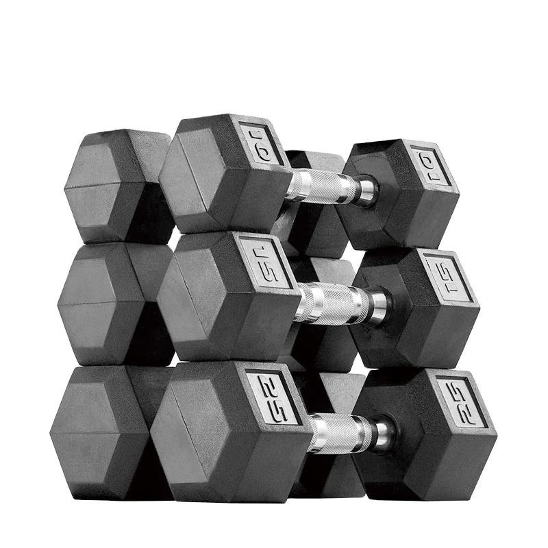 Haltères Hexagonaux en Caoutchouc Noir Revêtus, Vente en Gros à Bas Prix, Poids de 10kg, 15kg, 20kg, 30kg, 40kg, 50kg, Personnalisables en LBS ou KGS