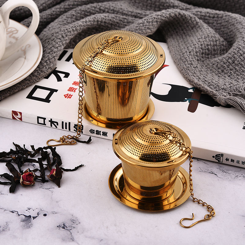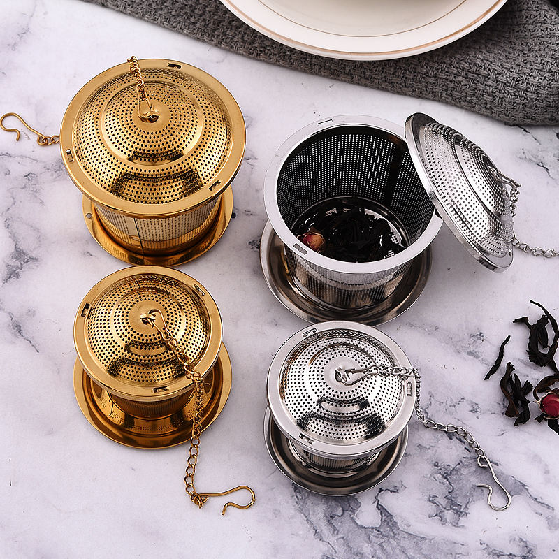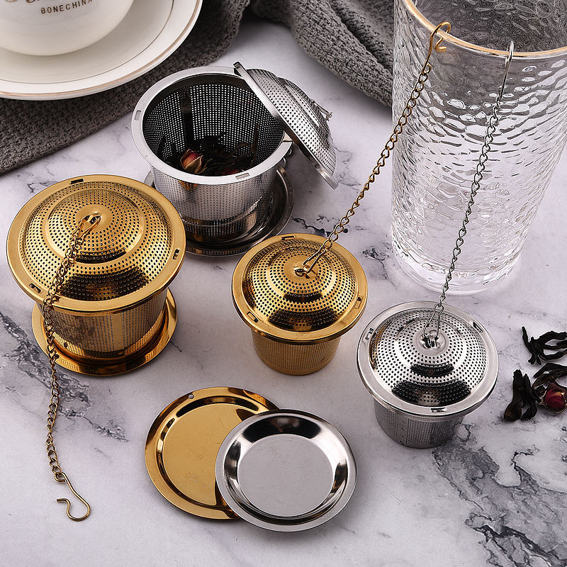 En gros Pas Cher Chinois Réutilisable En Acier Inoxydable Or Boule À Thé Infuseur À Thé Passoire À Épices Maille Boule Assaisonnement Passoire