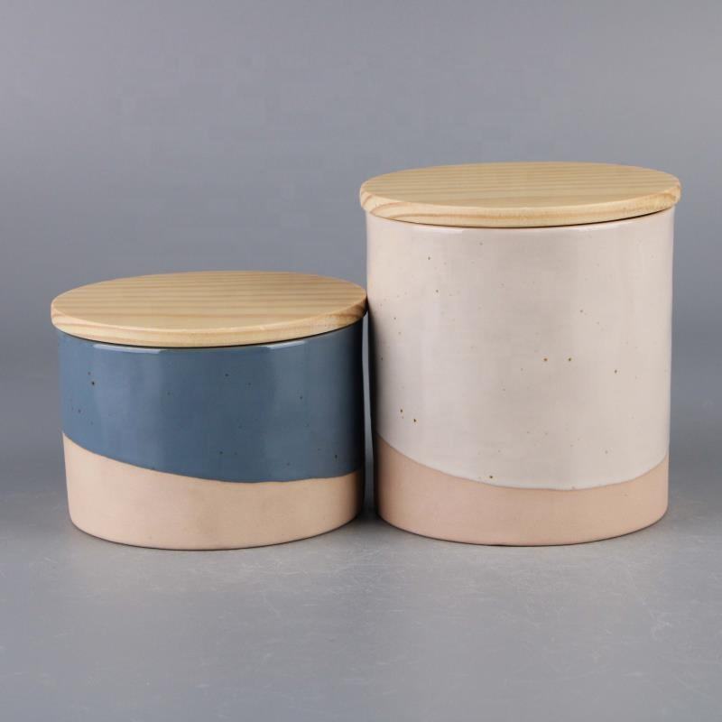 Pot de stockage des aliments en céramique avec couvercle en bois, pour café, couleur verte, bonbon, grand conteneur de thé, vente en gros, 50 unités