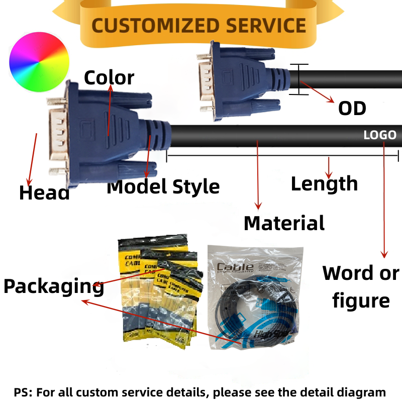 Câble VGA 3 + 5 Ultra haute vitesse personnalisé, bon marché, moniteur d'ordinateur, vidéo, 15P, TV, HDTV, câble VGA
