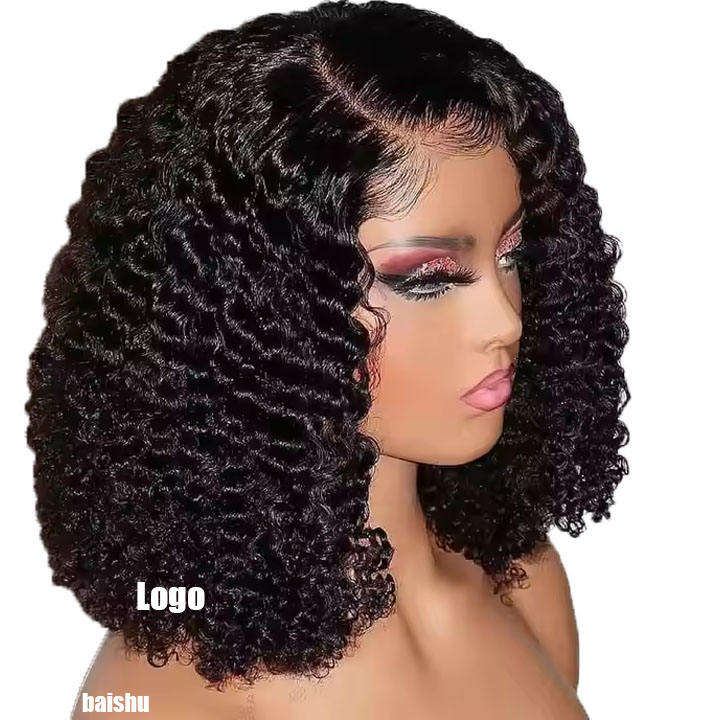 Perruque Courte Bouclée Profonde Jerry Curl Vierge Cheveux Humains Perruques Lace Frontale HD Complète Noire pour Femmes Petite Taille de Bonnet en Gros Pas Cher