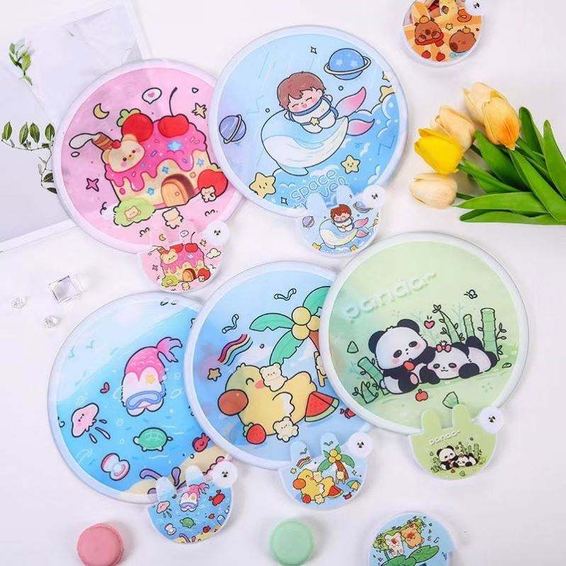 Éventail publicitaire en PVC transparent, personnalisé avec logo, motif dessin animé, cercle ou étoile, idéal pour cadeaux, vente en gros à prix réduit