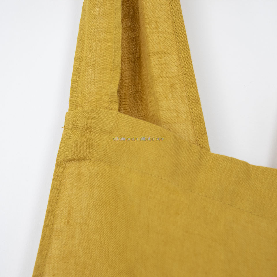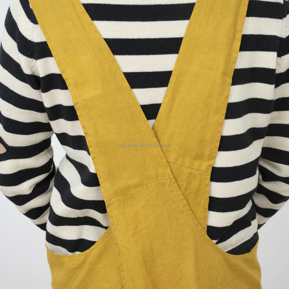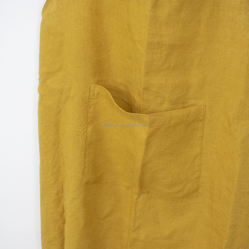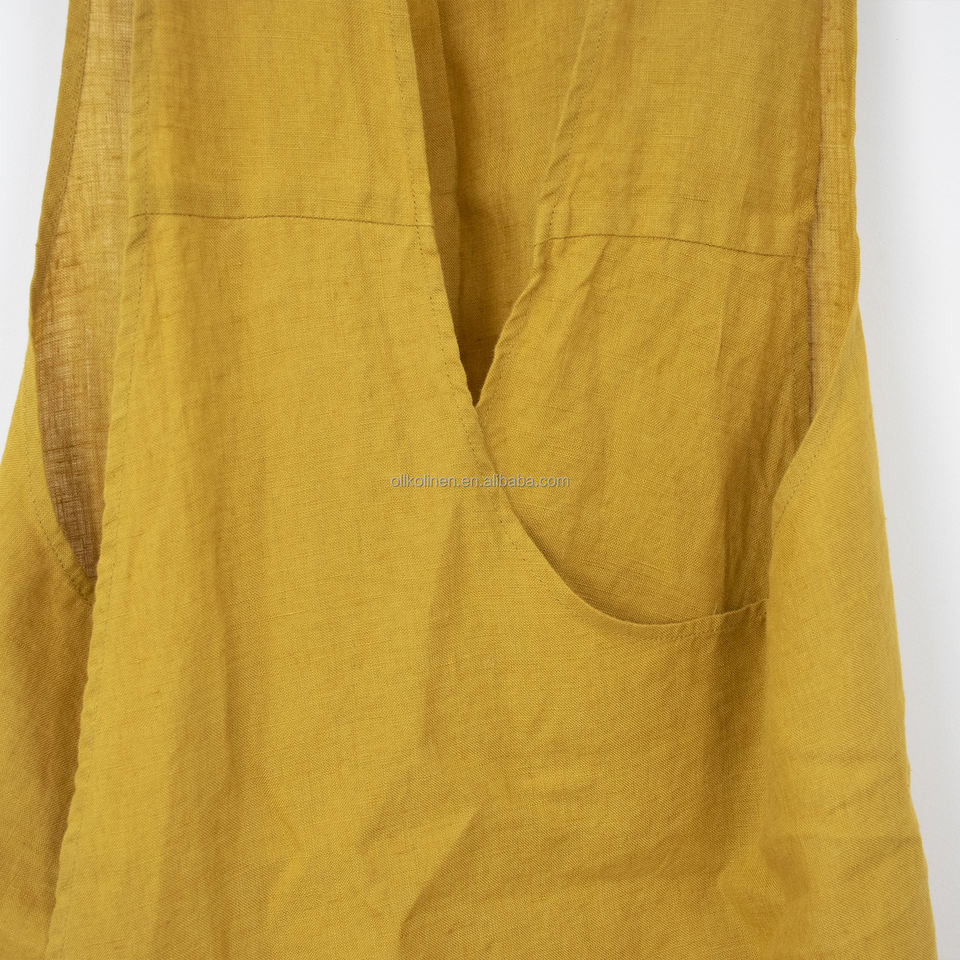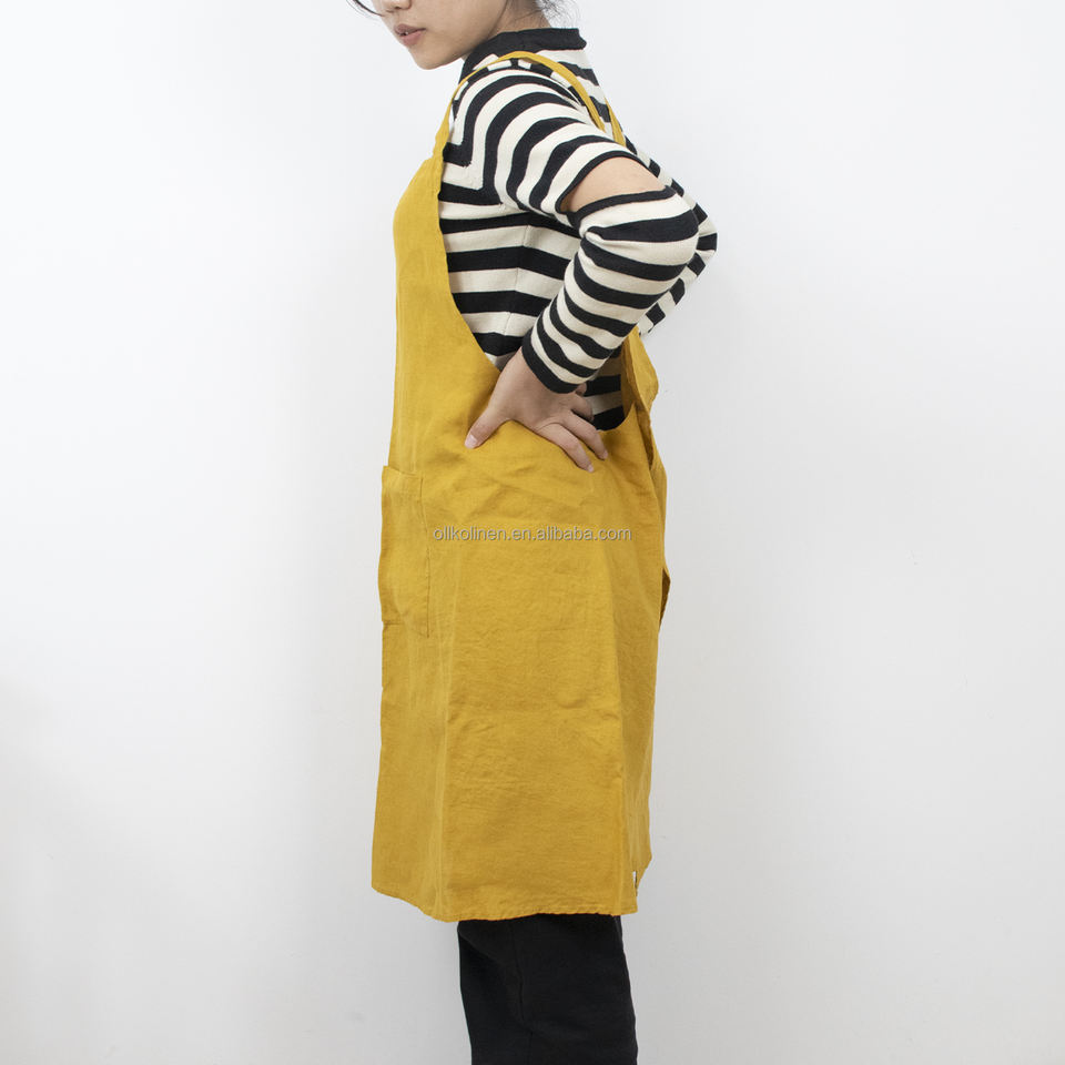Wholesale Cheap High Quality Custom logo Japanese Style Kitchen Cooking Orange Yellow Washed Pure 100% Linen Pinafore Aprons