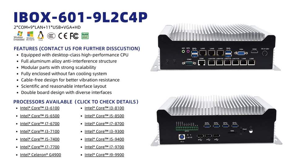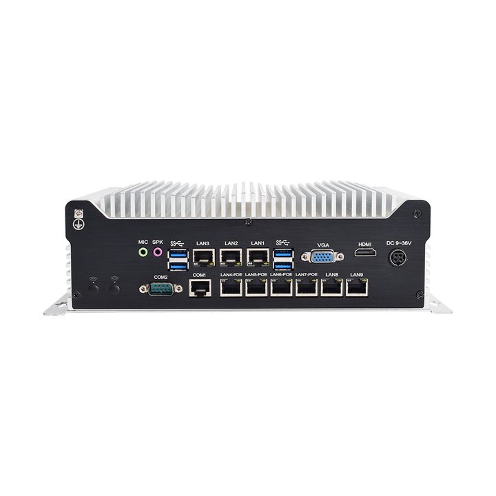Mini PC en gros à prix abordable, séries I7 I9, conçus pour les applications Linux, usage industriel avec 9 ports LAN et emplacement d'extension PCIe pleine taille