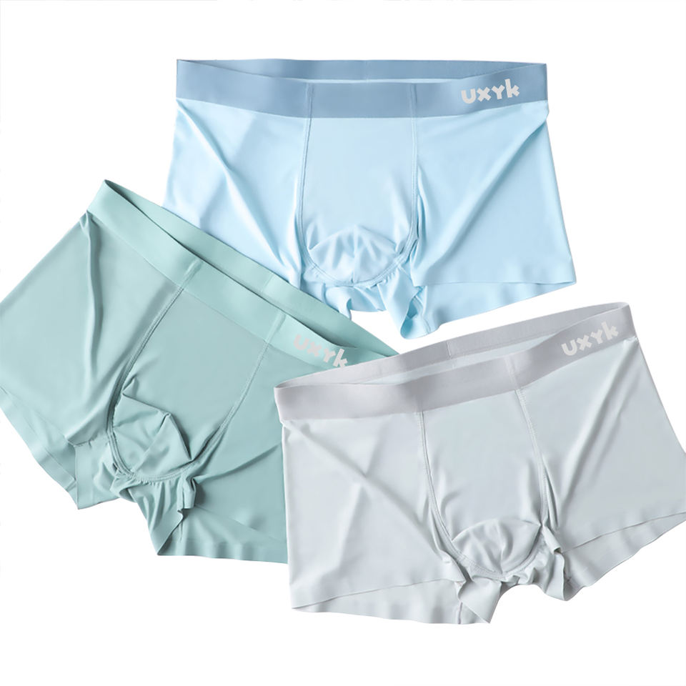 Vente en gros Prix bas Ensemble de sous-vêtements mi-hauts respirants sans couture en soie glacée pour hommes
