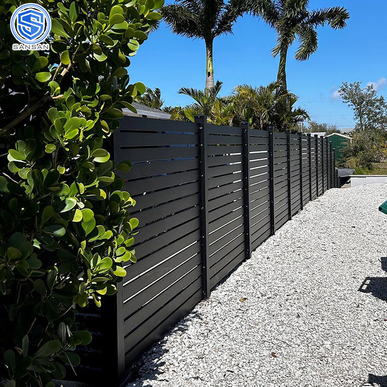 Vente en gros de piscine extérieure bon marché intimité clôture en aluminium lamelle horizontale en métal idées de clôture de jardin panneaux de clôture de maison de cour