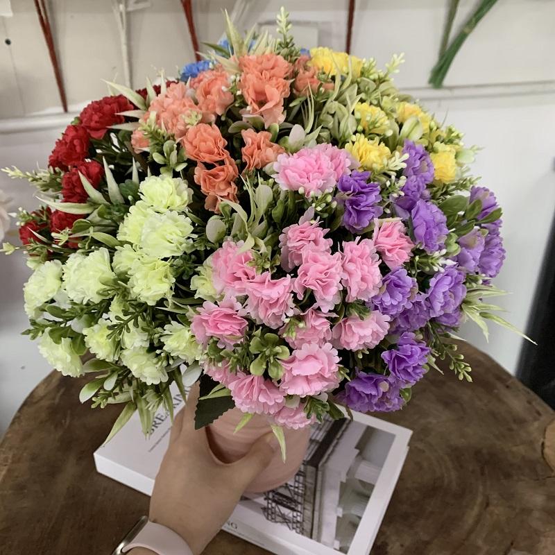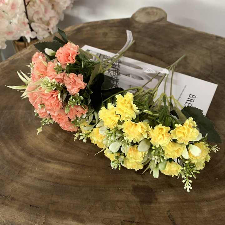 Vente en gros pas cher petit mini bouquet d'oeillet de fleurs artificielles à 5 branches pour les célébrations mensuelles