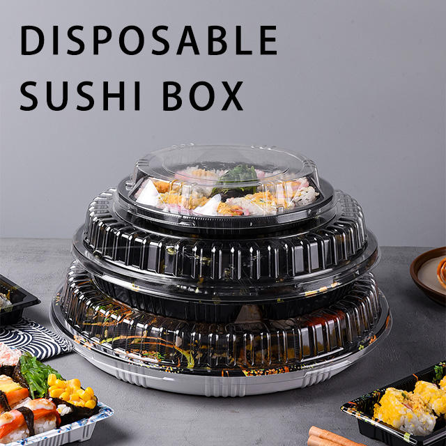 Plateau à sushi jetable de qualité alimentaire à prix de gros, avec couvercle anti-fuite pour repas à emporter, bonbons, et matériau PET adapté aux animaux domestiques