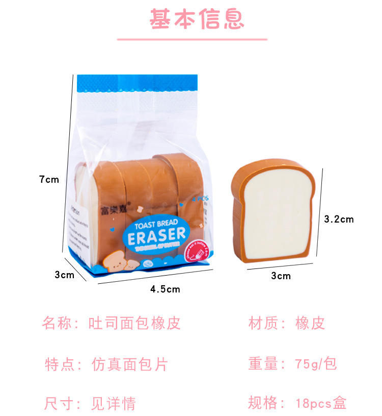 Gommes créatives en forme de pain 3D pour enfants, vente en gros à prix réduit