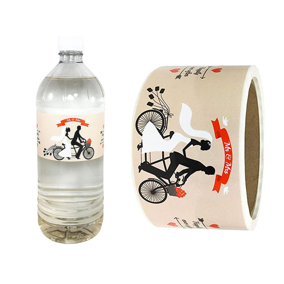 Rouleau d'étiquettes autocollantes imperméables en gros, papier personnalisé avec logo, design pour bouteilles d'eau, boissons, café, décoration - Matériel en cuivre