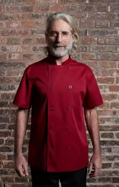 Vente en gros Veste de chef Veste de cuisine à manches courtes Uniforme de travail durable Couleur unie Veste de chef de restaurant imperméable Coton