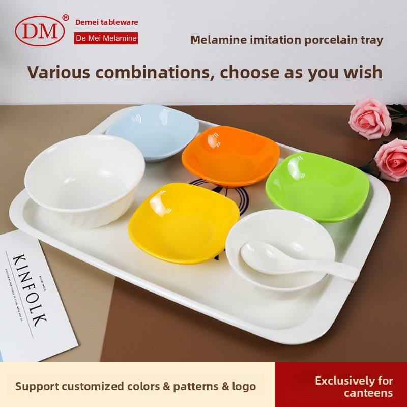 Plateau de restauration rapide chinois en gros, rectangulaire, en mélamine, vaisselle en porcelaine, cantine, hôtel, épaissi, antidérapant, DM007