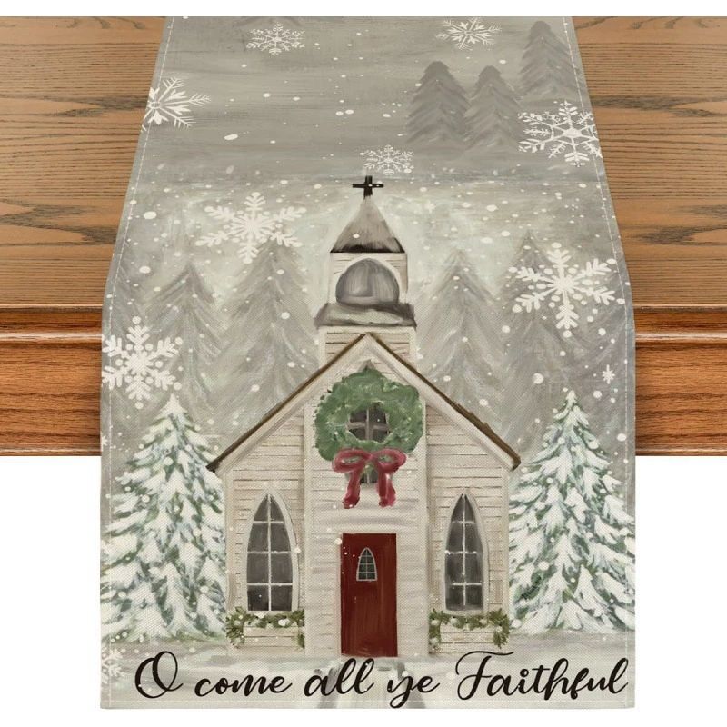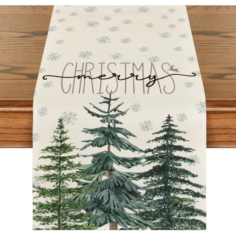 Chemin de table de Noël en gros, chemin de table à fleurs flocon de neige, nappe de table de saison, décoration de table de cuisine pour les fêtes d'hiver