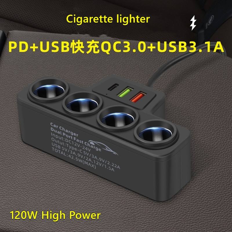 Caractéristique:Chargeur de voiture allume-cigare charge rapide 120W
