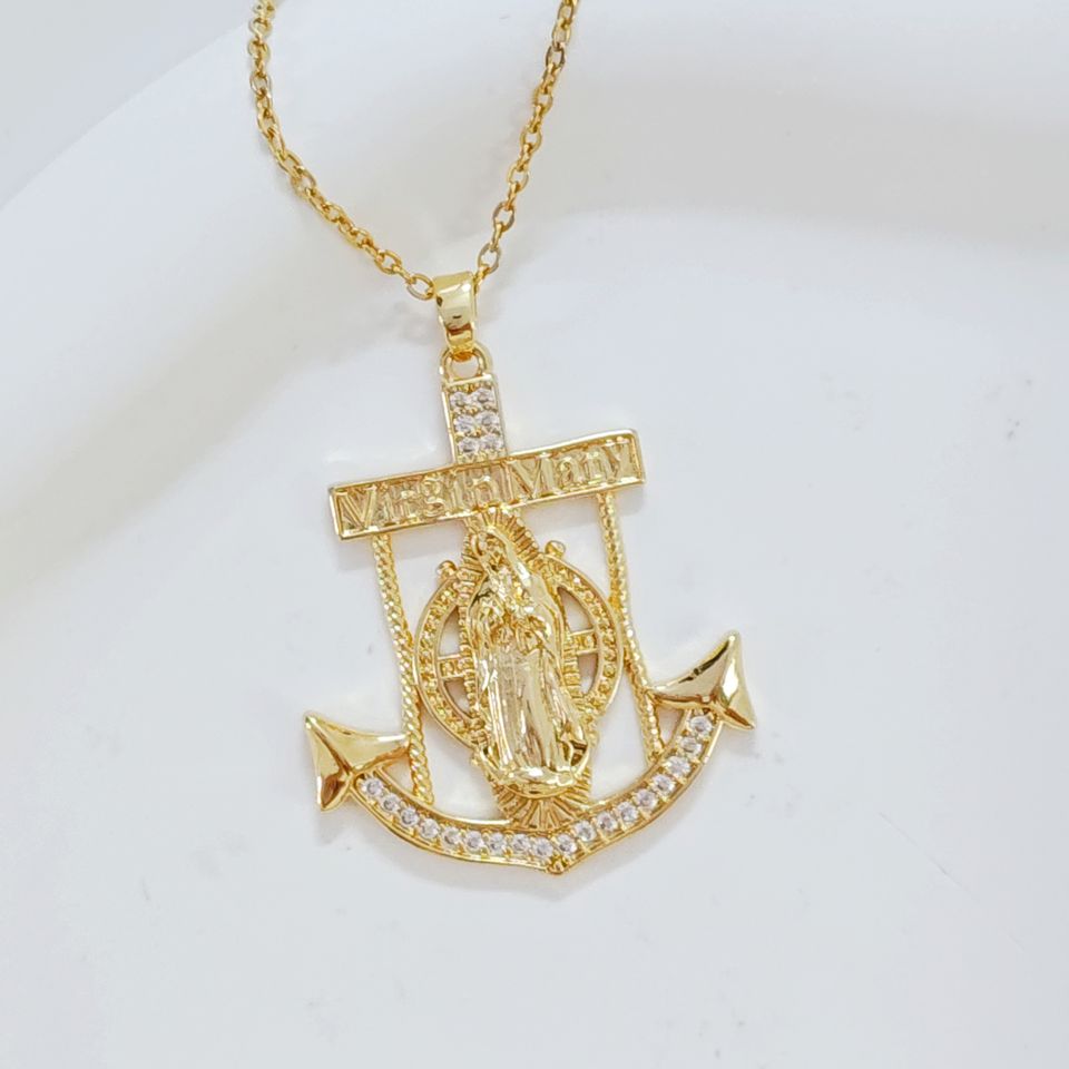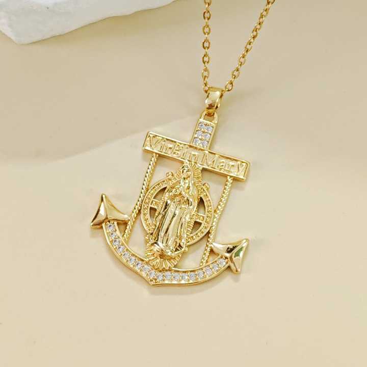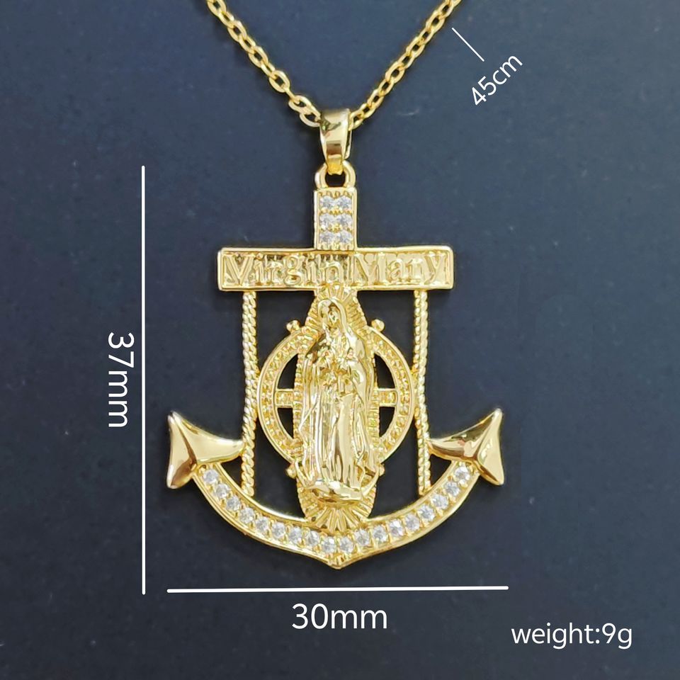 Wholesale Classic Gold Plated Catholic Prayers Stainless Steel Chain Anchor Virgin Mary Pendant Engraved Religious Unisex Casual