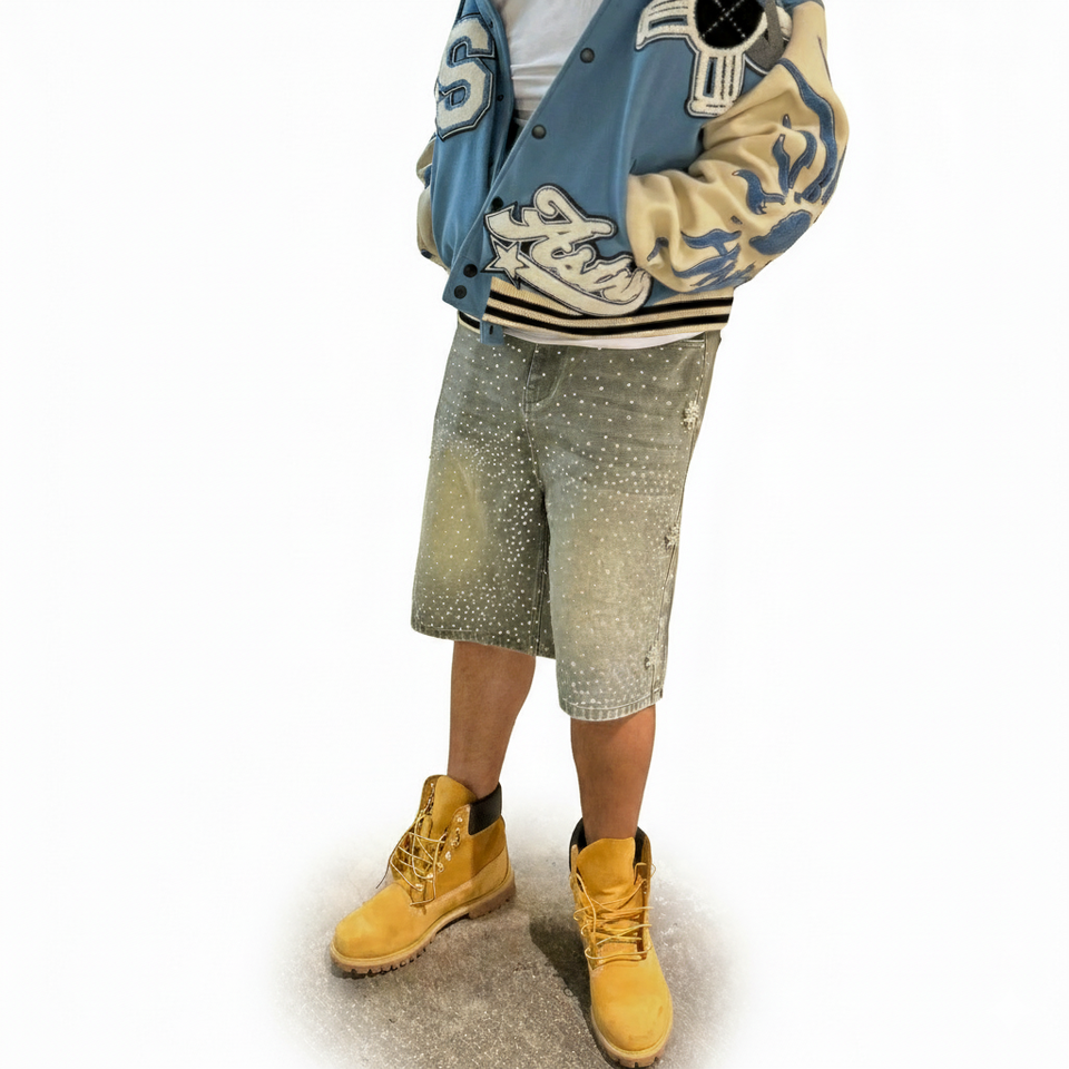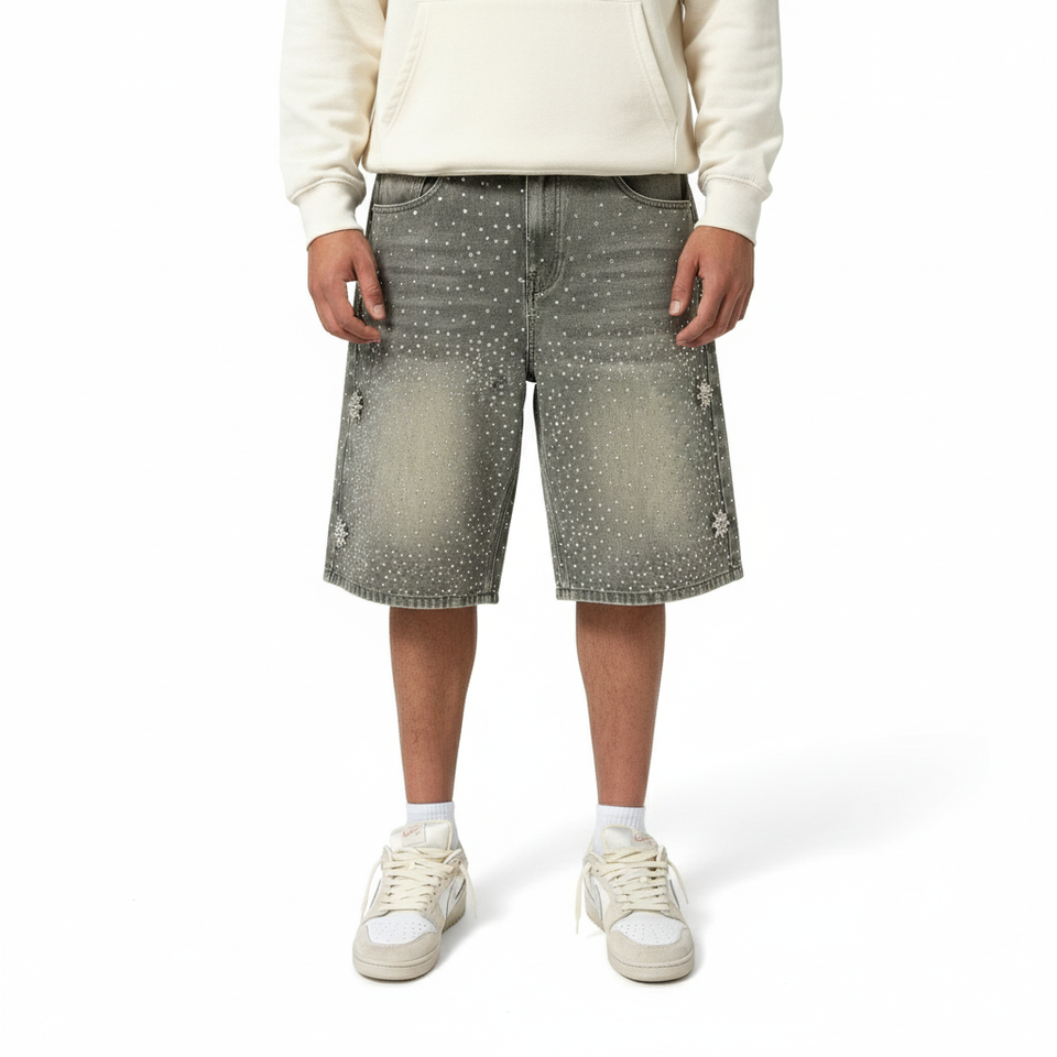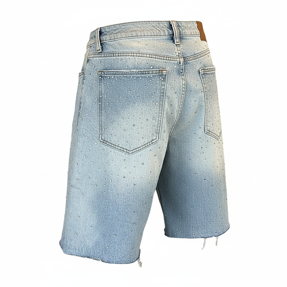 Shorts en jean déchirés taille haute bleus avec strass pour hommes et femmes – Collection été – Vente en gros