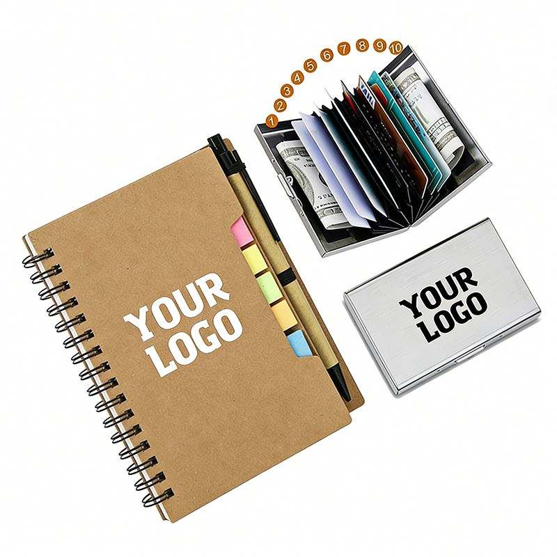 Lot de stylos autocollants en spirale pour le bureau, cadeau promotionnel d'entreprise, petit carnet en papier kraft avec logo personnalisé