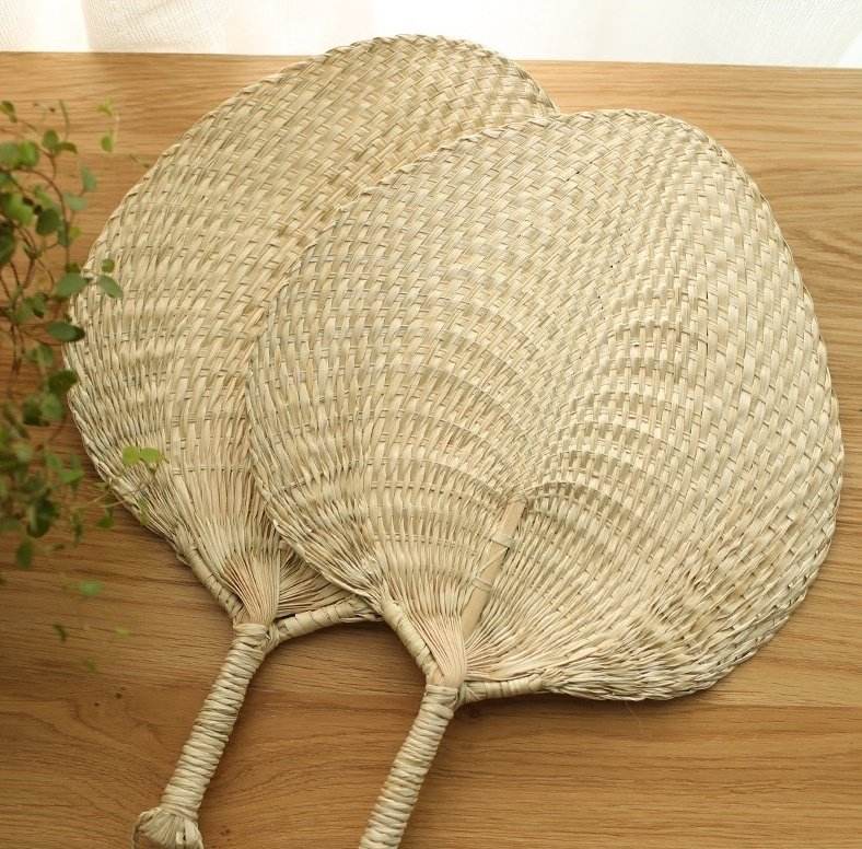Vente en gros Éventail en raphia de bambou coloré Éventails d'été en feuille de palmier paille canne rotin tissé