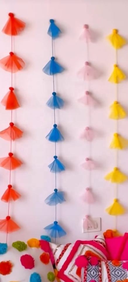 Vente en gros de ficelle de décoration de mariage indien colorée bon marché chaînes de filet multicolores décorations suspendues fleurs artificielles