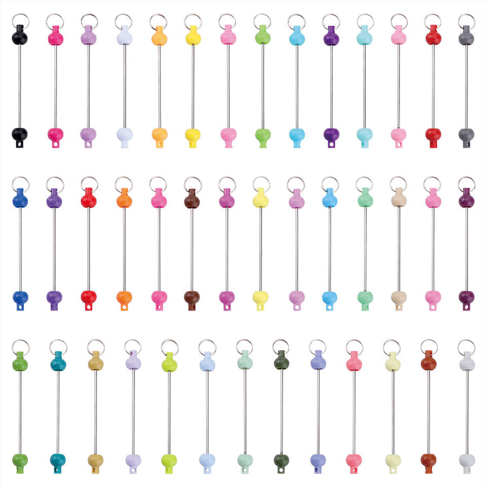 Vente en gros de barres de porte-clés en alliage métallique coloré, couleur unie, rectangulaires, abstraites, à perles, dorées, pour la fabrication de porte-clés