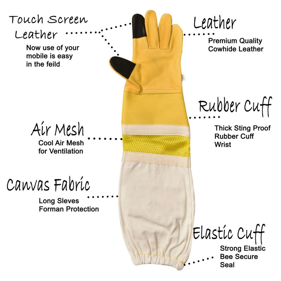 Gants d'apiculteur en cuir de vachette respirant et confortable avec des vêtements de sécurité compatibles avec l'écran tactile en bon tissu vente en gros