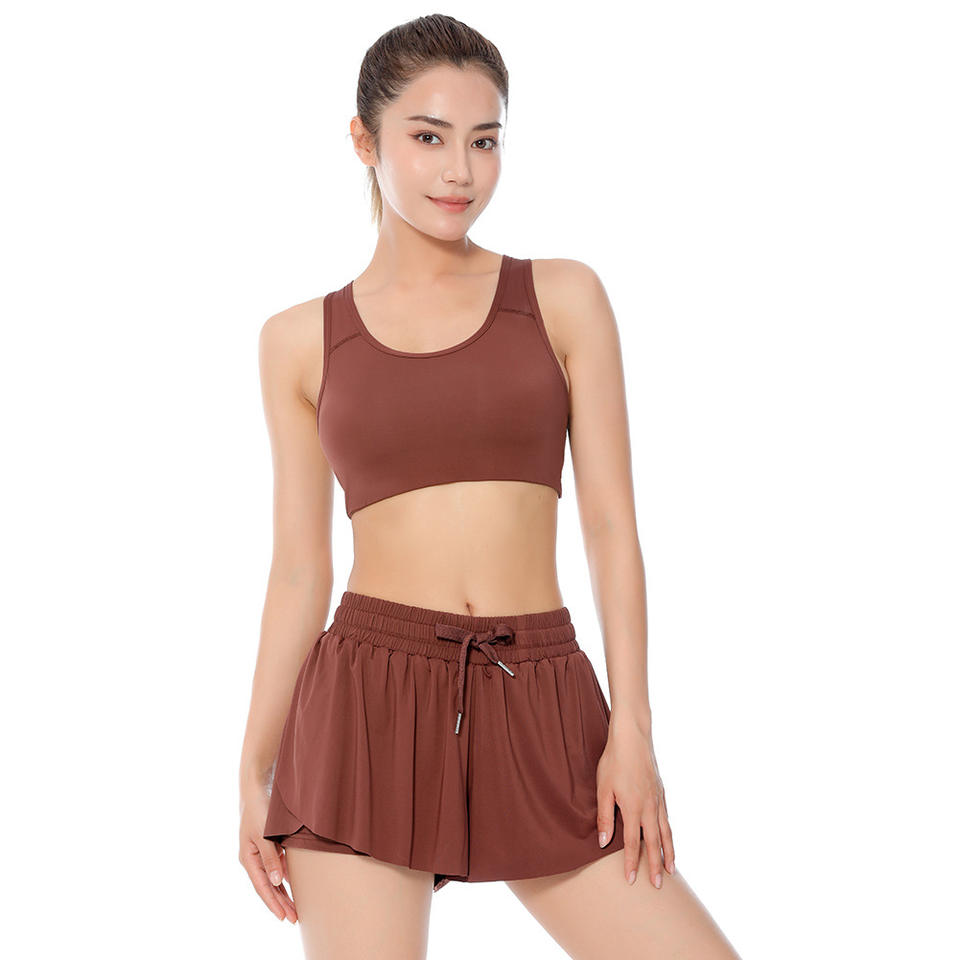 Vente en gros de vêtements d'été sans manches confortables de couleur unie shorts respirants pour femmes ensemble de vêtements de yoga robe de yoga