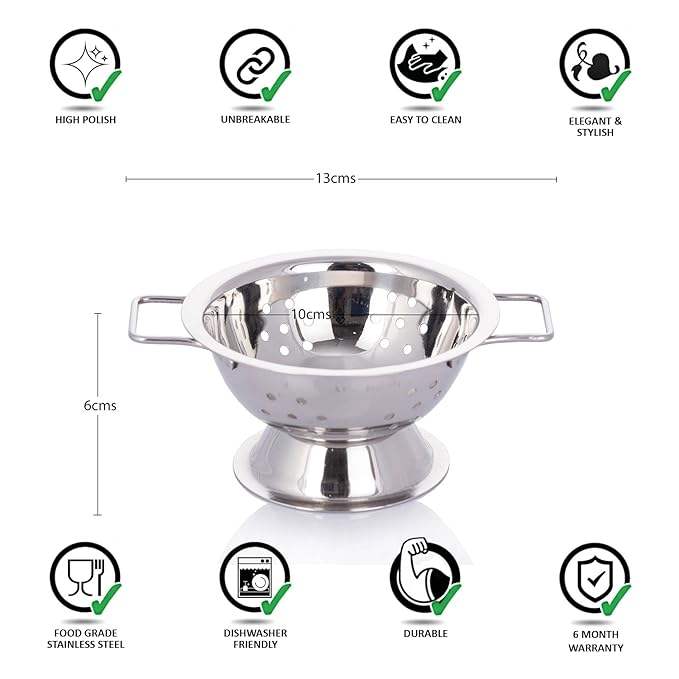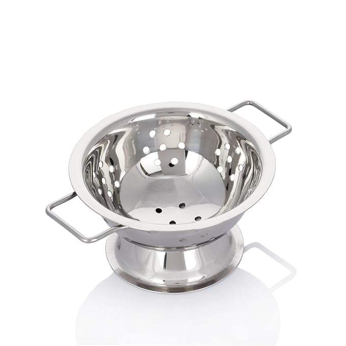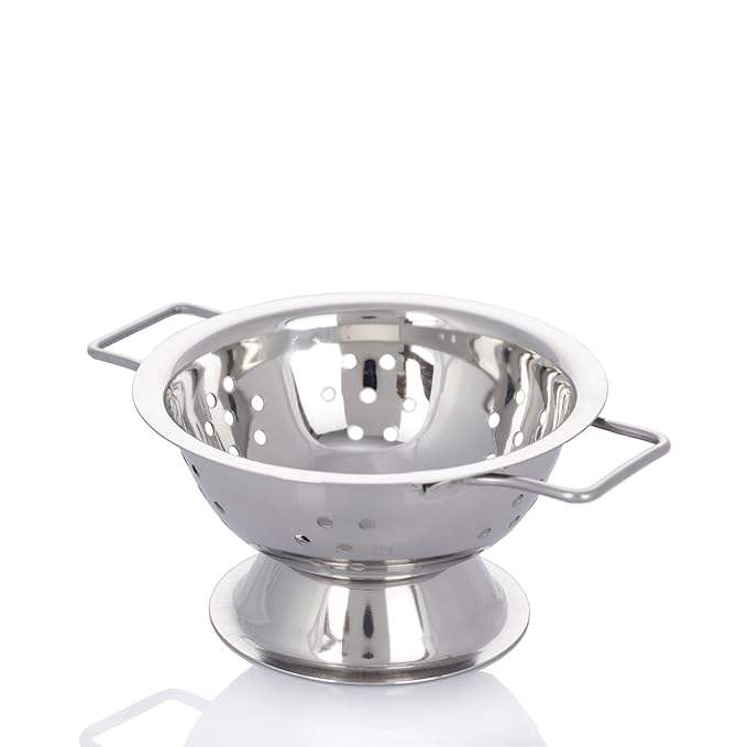 Passoire compacte en acier inoxydable avec poignée pour égoutter fruits, légumes et pâtes, finition argentée, qualité alimentaire, vente en gros