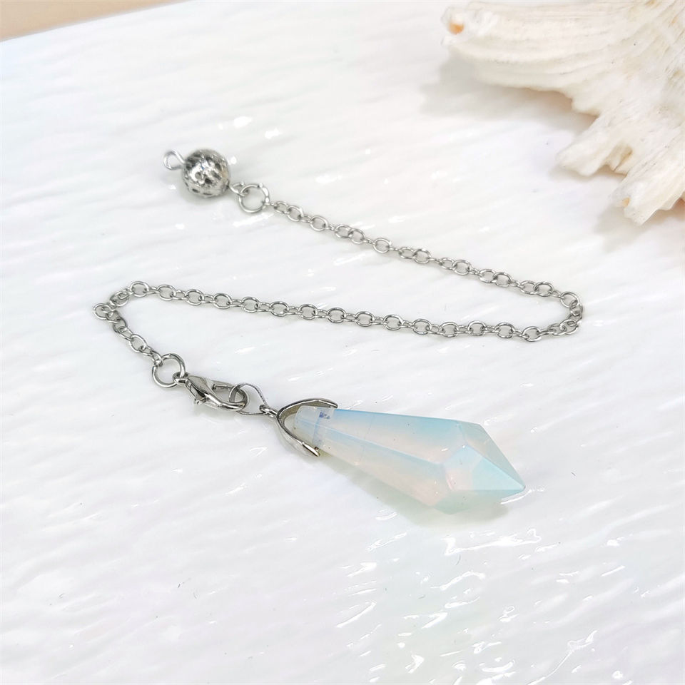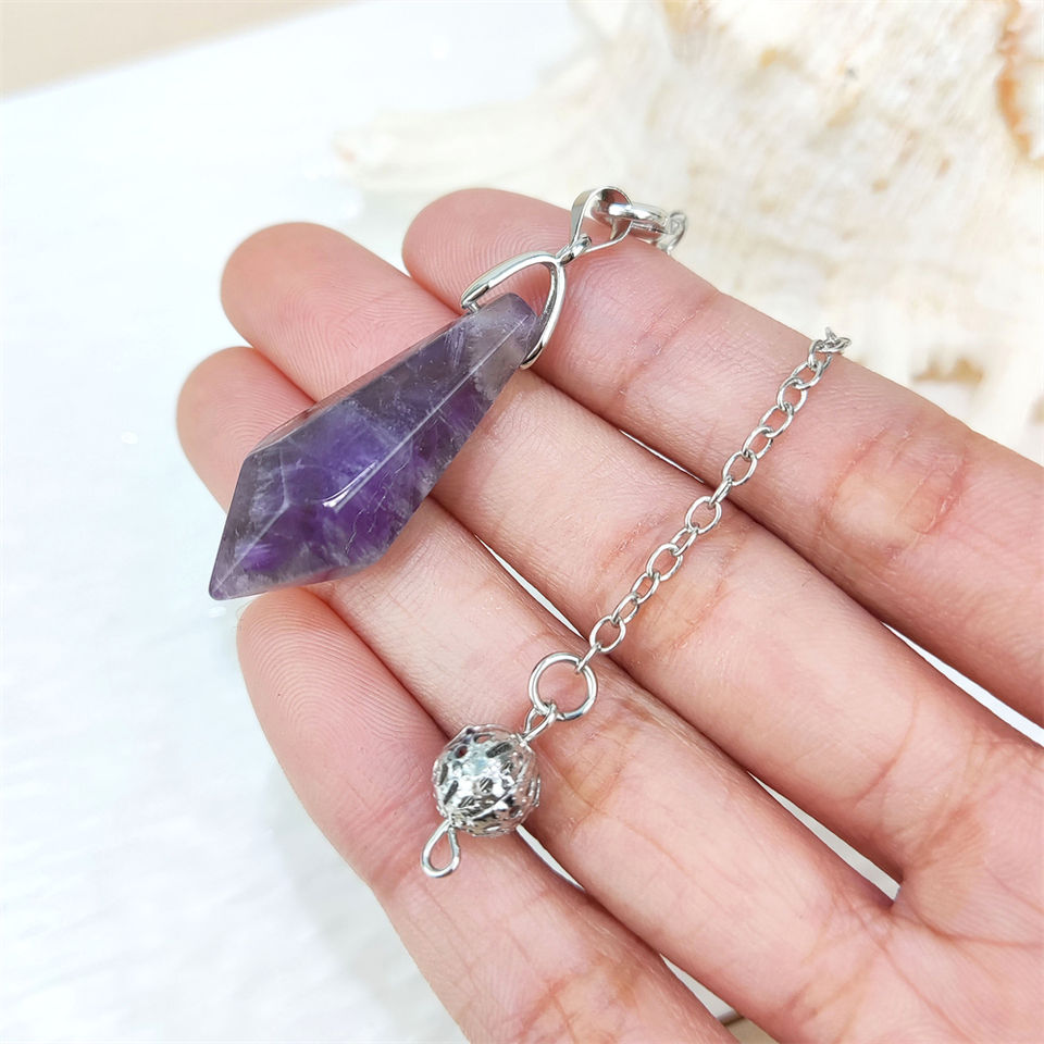 Gros cône pointu pendule en pierre naturelle pour radiesthésie Divination pierre précieuse avec chaîne couleur argent pendentif Reiki Pendule