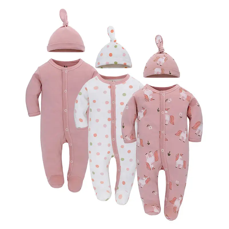 Wholesale Cotton Fiber Baby Clothing Sets Custom 3-Pack Newborn Jumpsuits Rompers Snap Button Closure for Boys and Girls