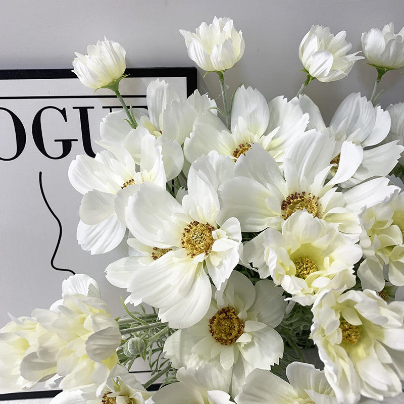 Fleurs artificielles en gros style campagnard, cosmos reine à tige unique, pour la fête des mères, la décoration de chambres familiales, de bureaux et d'hôtels