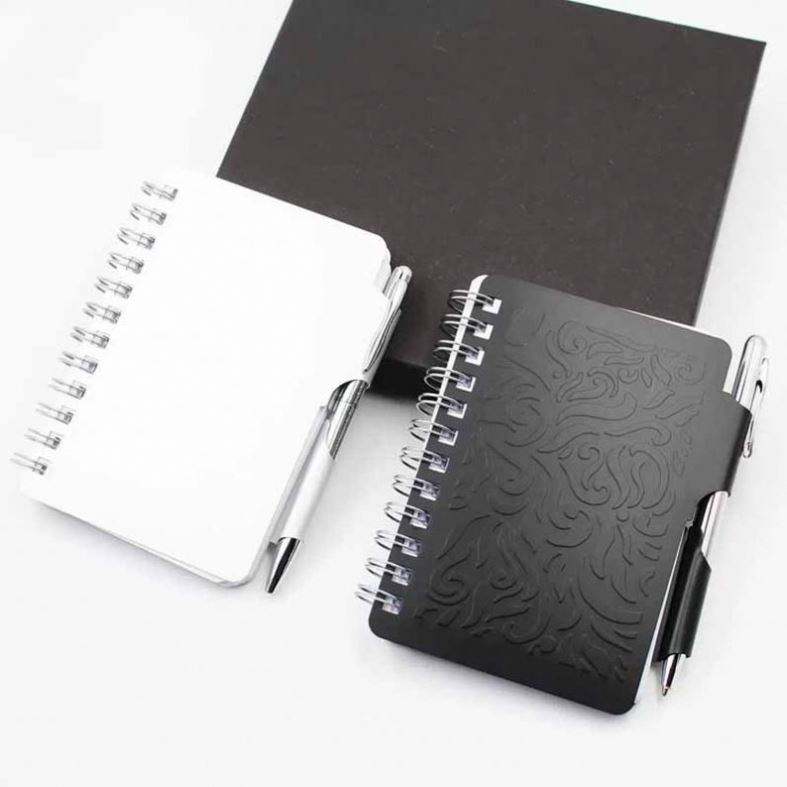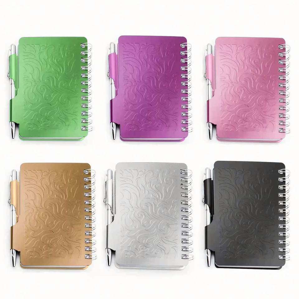Carnets A7 créatifs en gros avec coque en aluminium, stylos et blocs-notes en métal, spirales en alliage d'aluminium créatives