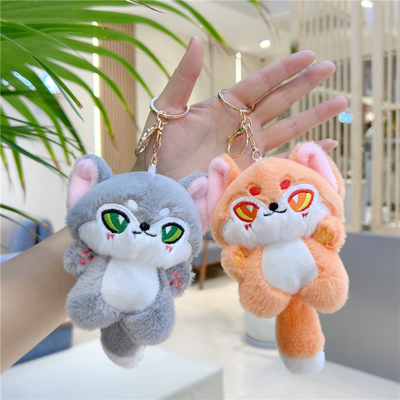 Vente en gros de porte-clés en peluche créatifs et mignons en forme de coyote et de loup, jouets en peluche pour loup, cadeau d'anniversaire pour loup