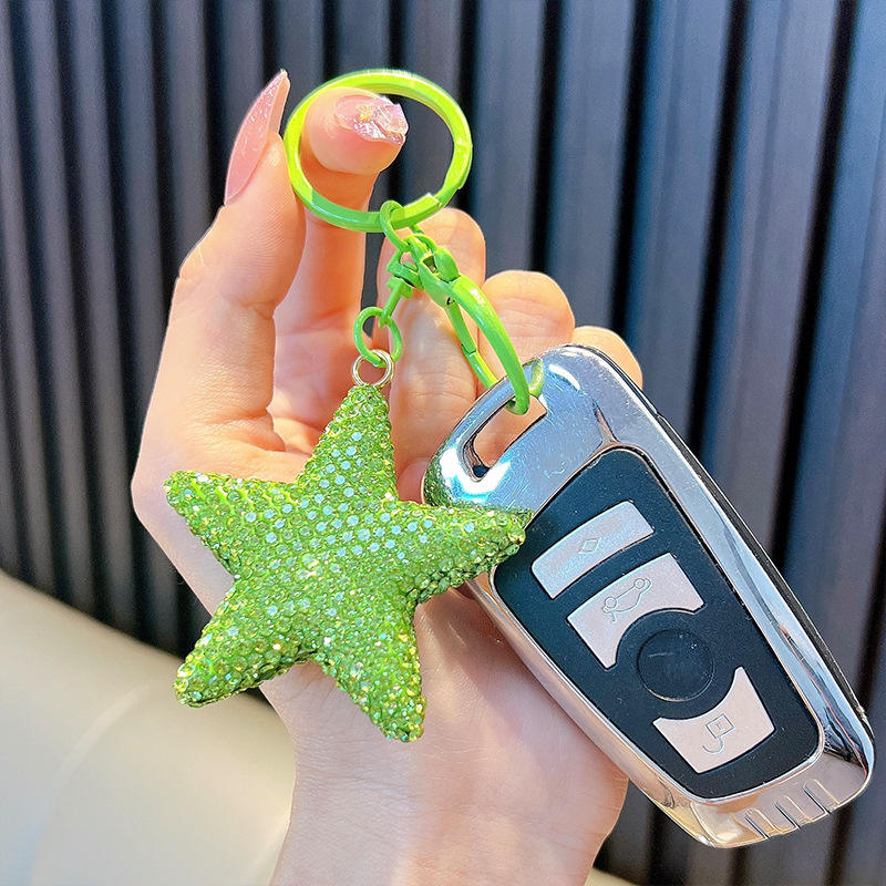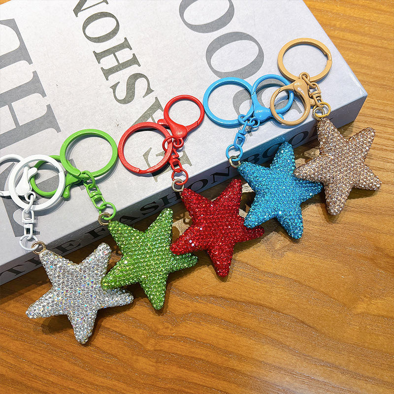 Porte-clés pentagramme créatif en diamant complet, exquis, petit porte-clés en cristal en caoutchouc pour voiture, pendentif pour sac à dos, léger et créatif