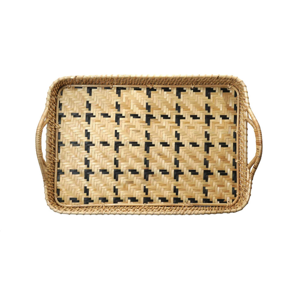 Vente en gros Plateau en bois tissé en rotin japonais créatif pour la maison Plateau à thé nordique Plateau de décoration rétro pour petit déjeuner