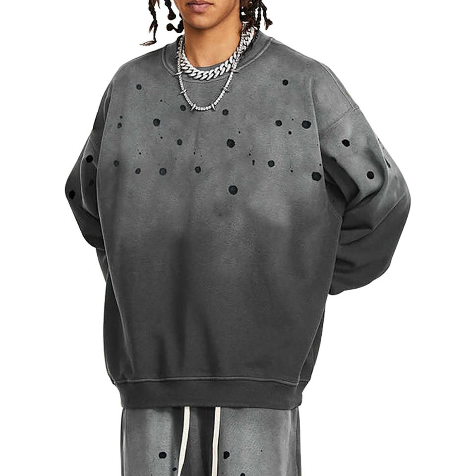 Vente en gros ras du cou blanc poids lourd Logo personnalisé col rond surdimensionné en détresse sweat hommes coton mélangé