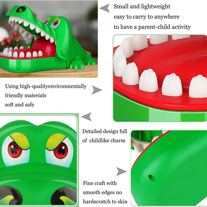 Roulette dentaire crocodile en gros avec dents en caoutchouc souple, jeu de morsure de main crocodile pour enfants, jouet de farce de table pour fête
