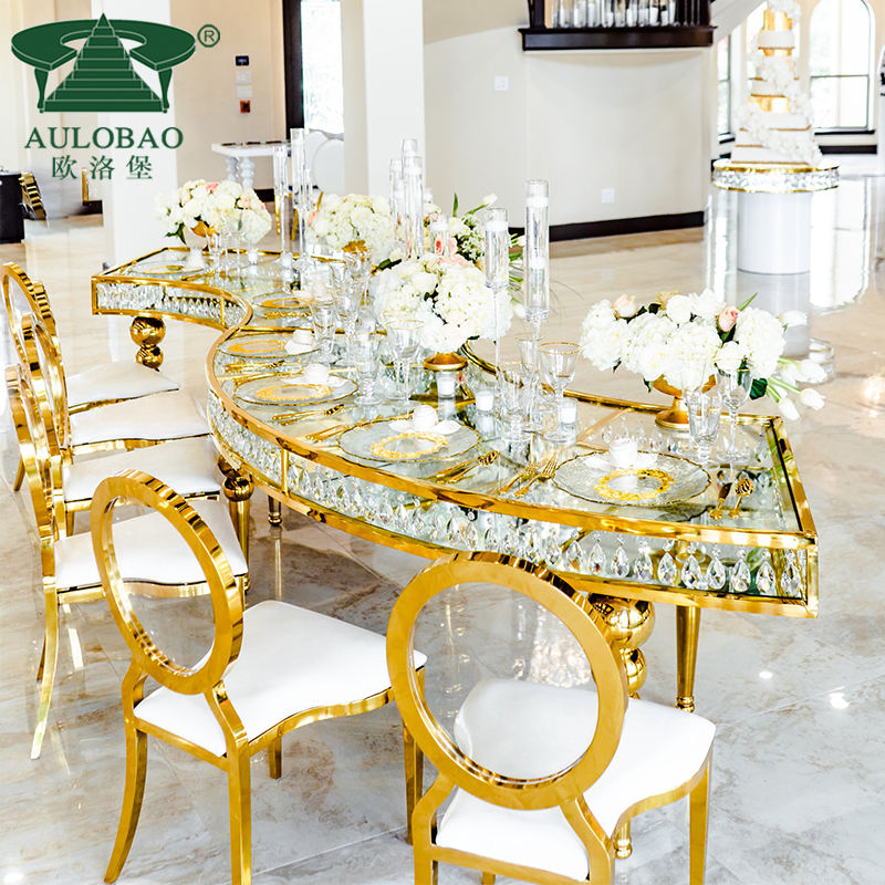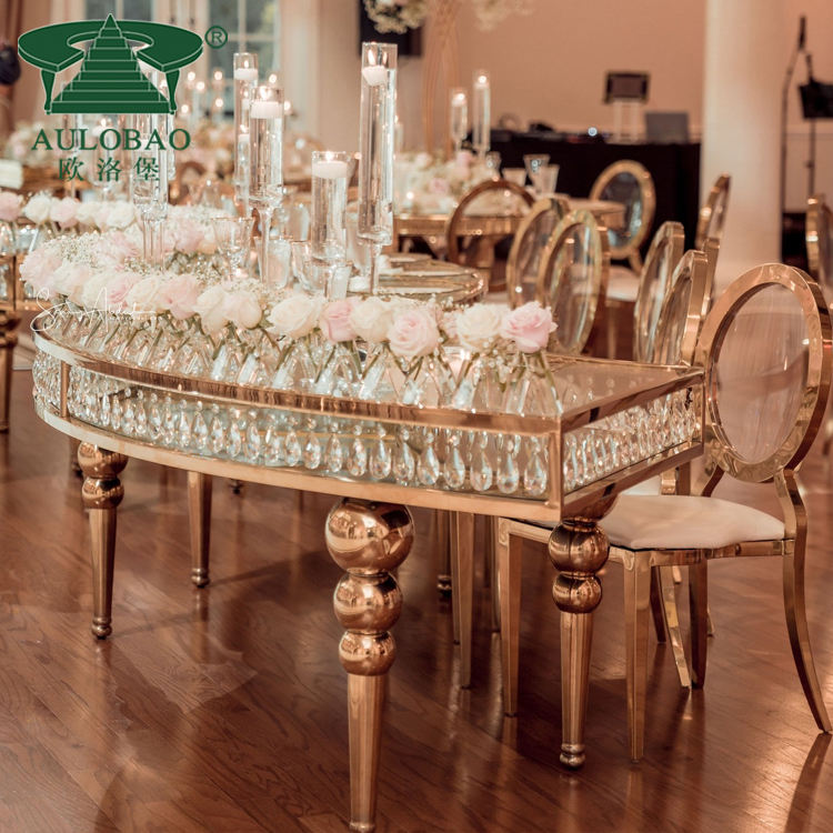 Table de mariage en acier inoxydable haut en verre trempé en cristal de gros pour l'événement