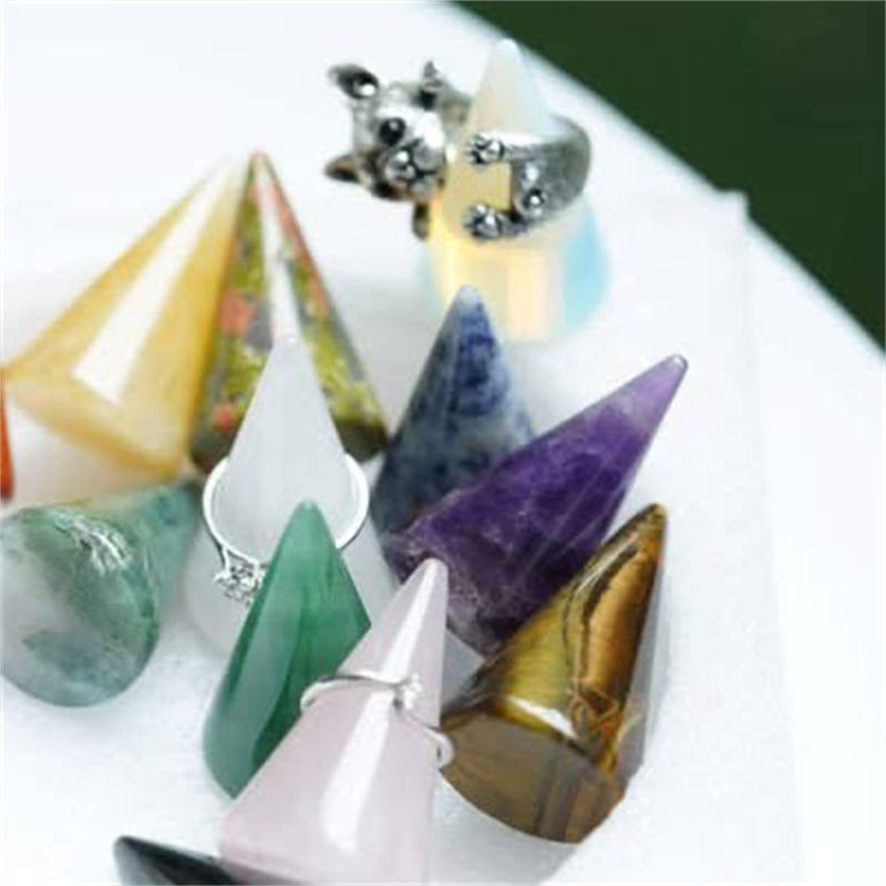 Vente en gros de bagues tour en cristal, support de pierres précieuses, pointe de quartz de guérison pour bijoux