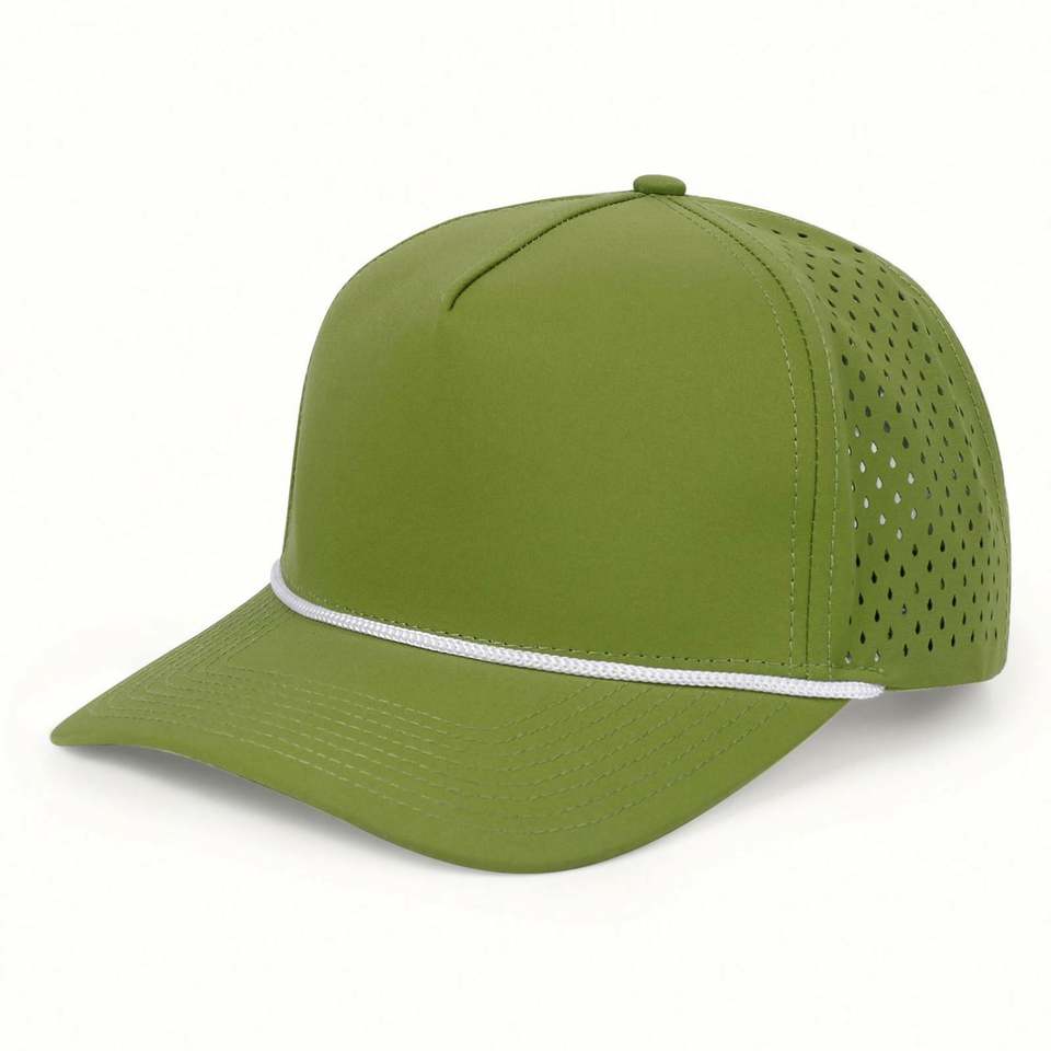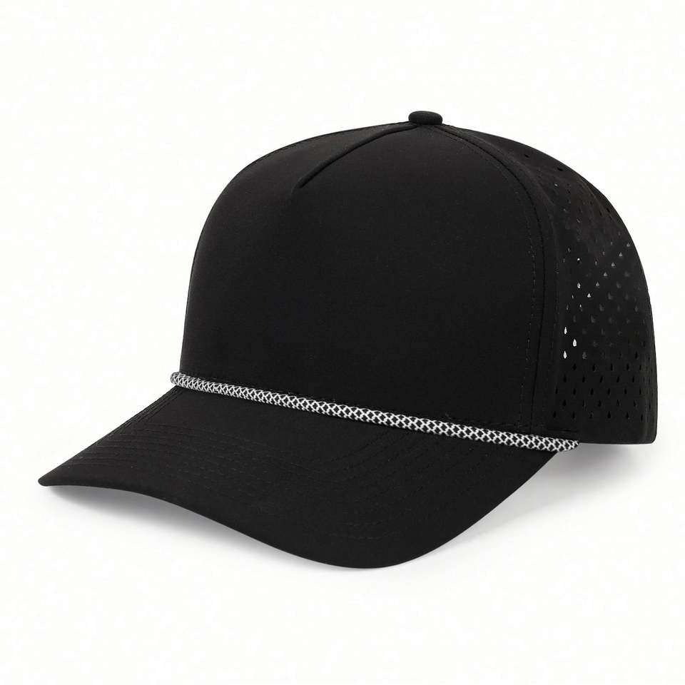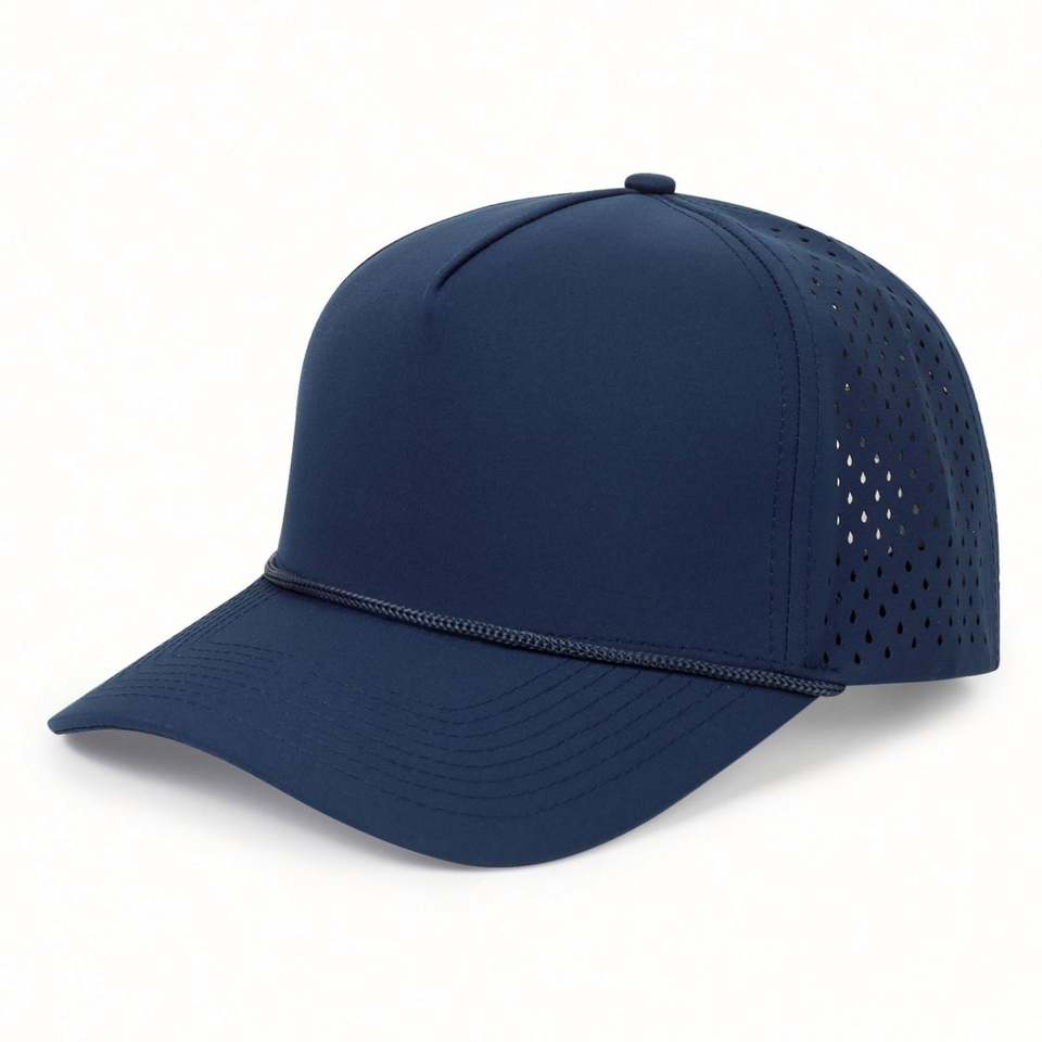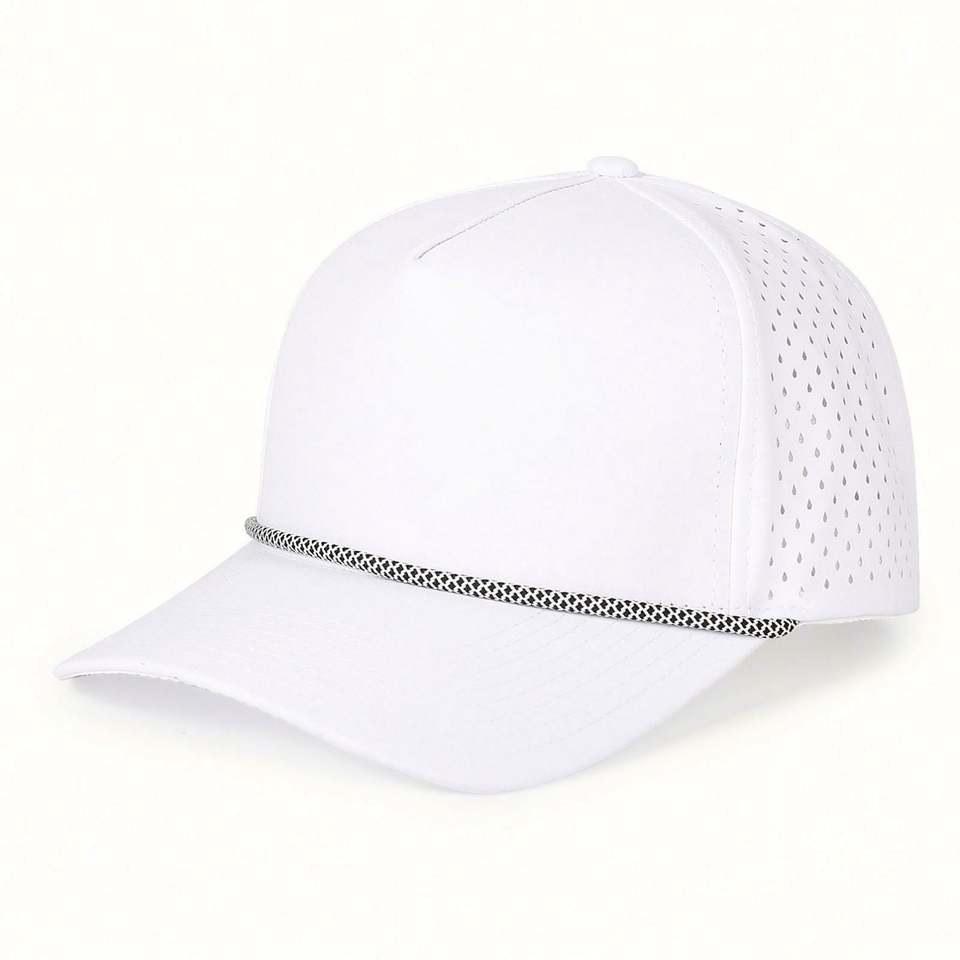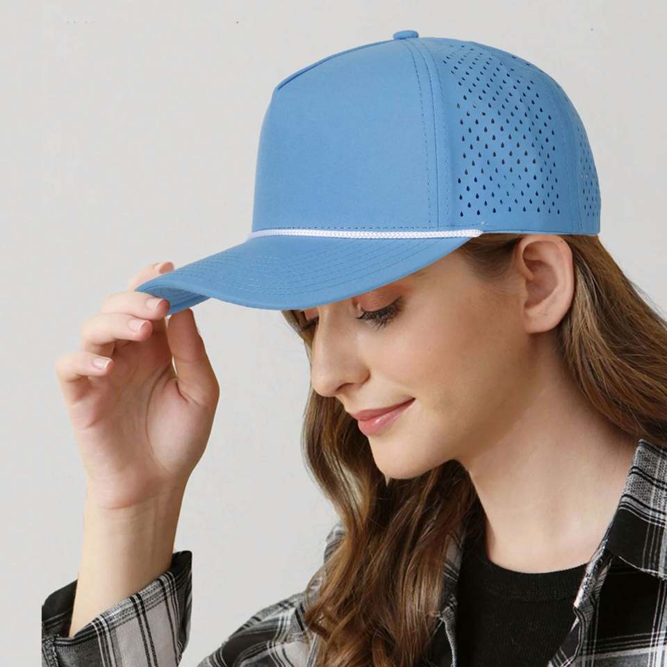 Casquette de baseball perforée avec logo personnalisé en polyester 100 %, découpe laser, avec corde, imperméable, pour le sport, vente en gros