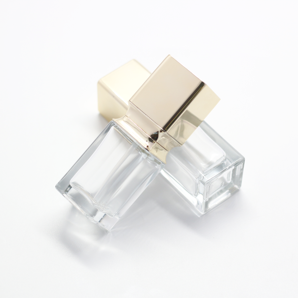 Fond de teint liquide transparent cosmétique vide plat de 30 ml personnalisé en gros bouteille en verre avec pompe