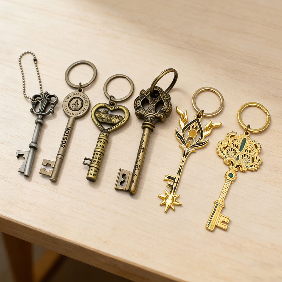Porte-clés personnalisés en forme de clé 3D en alliage de zinc, décapsuleur de bouteille de bière en métal, porte-clés gravés au laser UV sur mesure