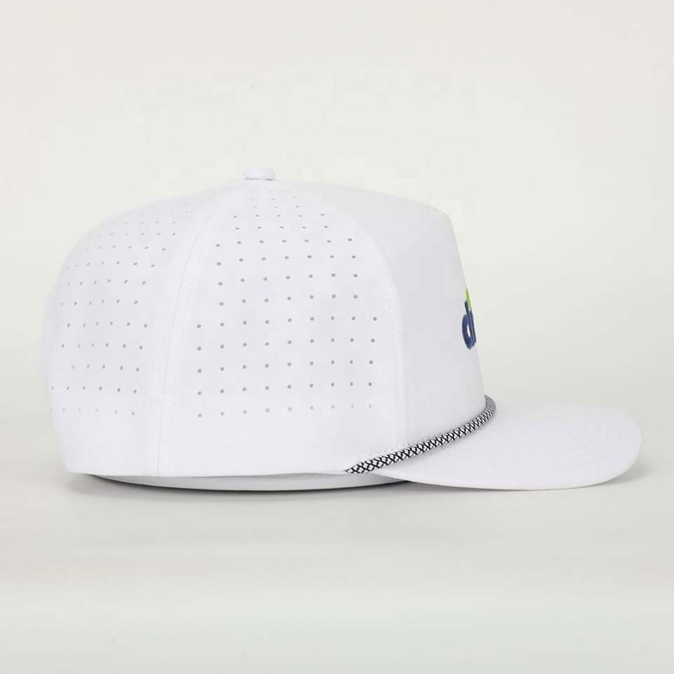 Wholesale Custom 5 Panel Embroidery Logo Black Polyester Dad Hat Performance Sport Gorras Laser Cut Hole Rope Baseball Cap
