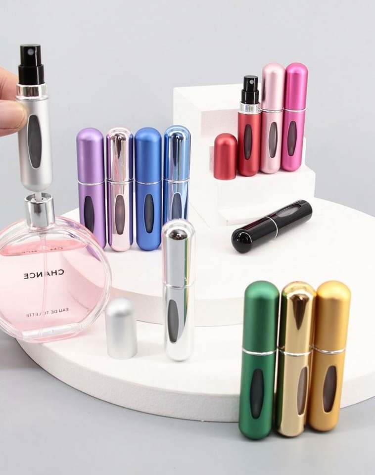 Vente en gros de vaporisateurs de parfum portables miniatures en aluminium de 5 ml, rechargeables, vides, avec pompe, pour les soins personnels