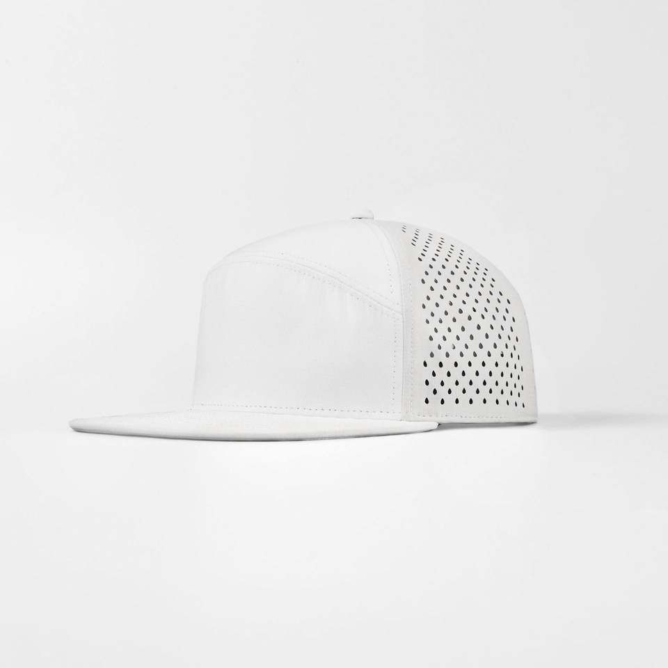 Casquette Snapback personnalisée en gros, 6 panneaux, visière plate, bleu marine, imperméable, structurée, logo brodé 3D, maille perforée au laser