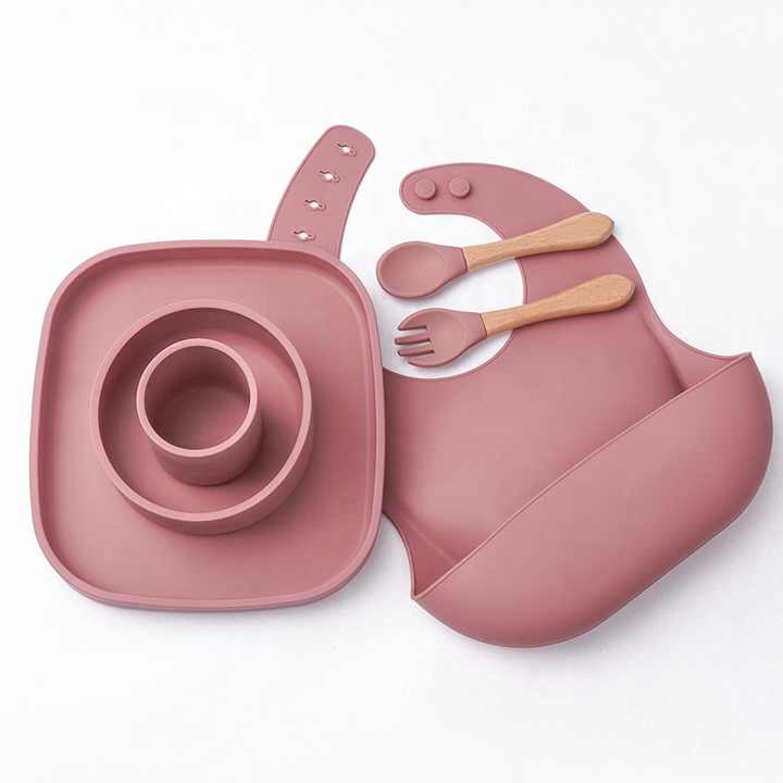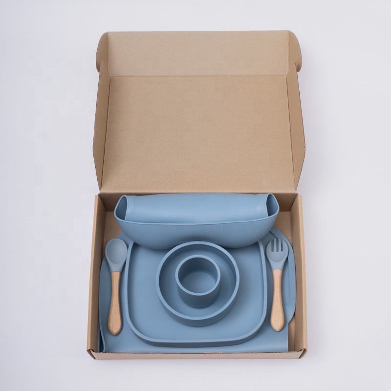 Ensemble de vaisselle de sevrage pour bébé 7 pièces personnalisé en gros ensemble cuillère fourchette en silicone souple couverts pour tout-petits à manger enfants ensemble d'alimentation pour bébé