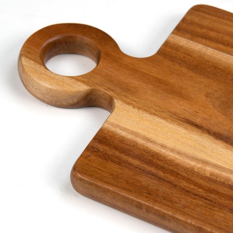 Planche à fromage rectangulaire en bois d'acacia sur mesure en gros avec poignée, épaisseur de 1,5 cm, passe au lave-vaisselle, pour servir les aliments
