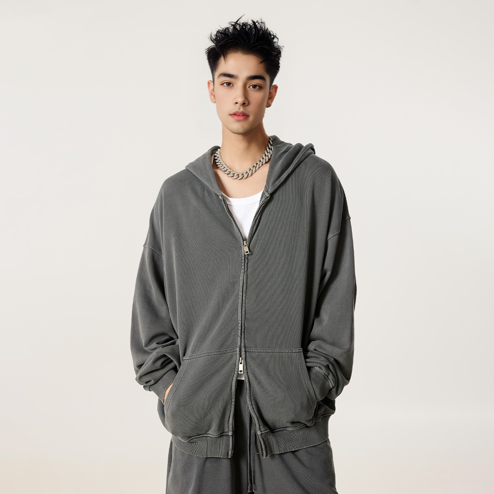 Wholesale Custom Acid Wash Hoodies for Men Vintage Streetwear Fashion Zipper-Up 100% Cotton Oversized Winter Fit