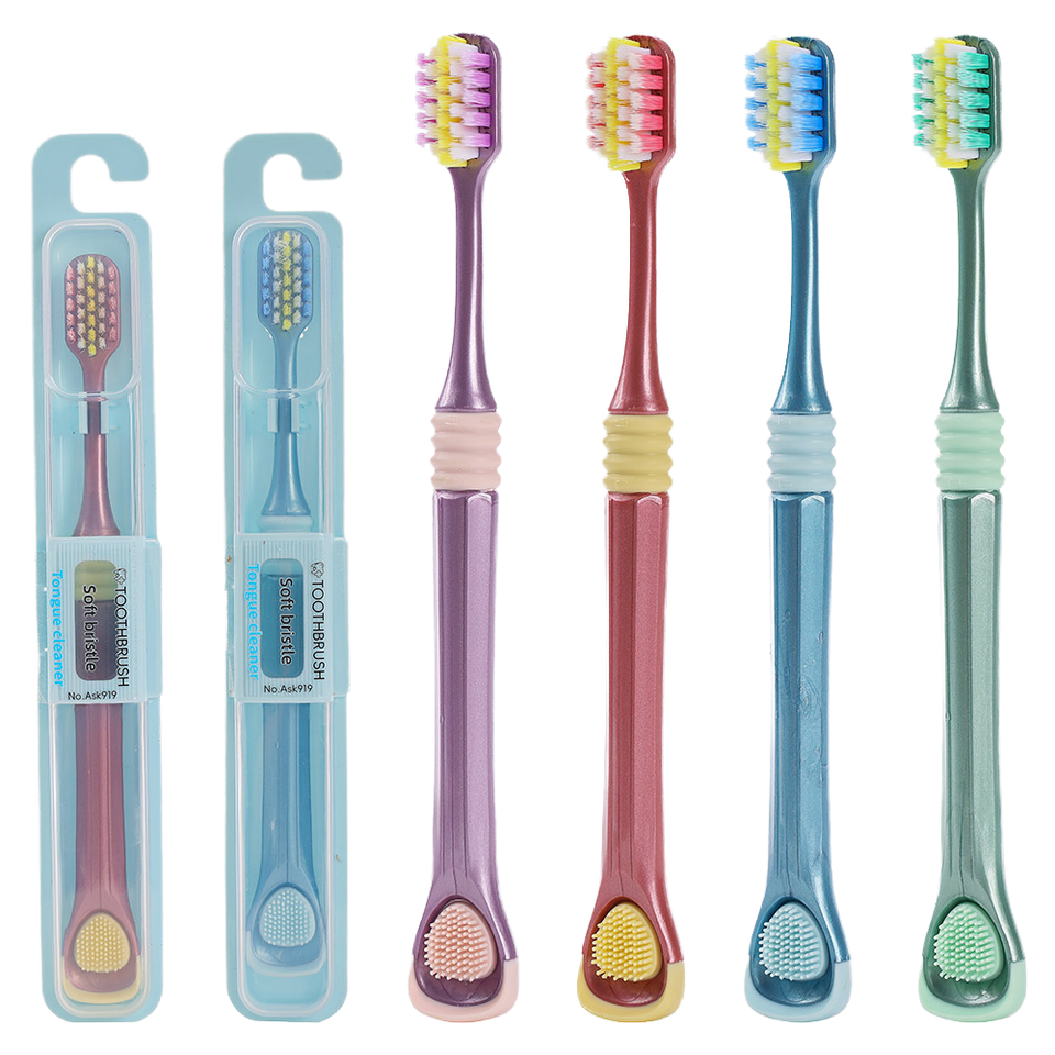 Brosse à dents adulte personnalisée en gros poils en nylon super doux manche en bambou design naturel pour les soins des dents sensibles