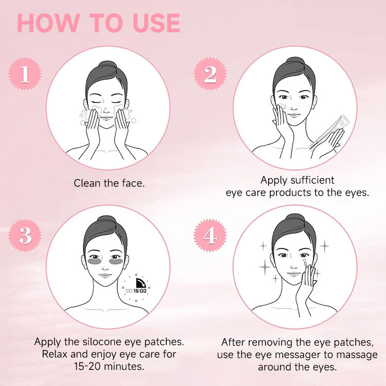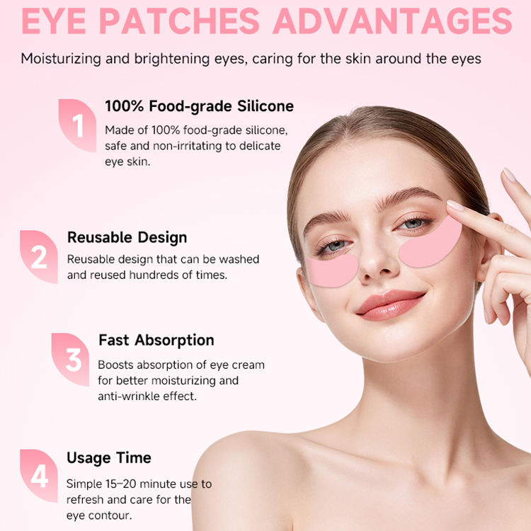 Vente en gros de patchs pour les yeux en silicone de qualité alimentaire 100% réutilisables, anti-rides, hydratants et éclaircissants, design personnalisé