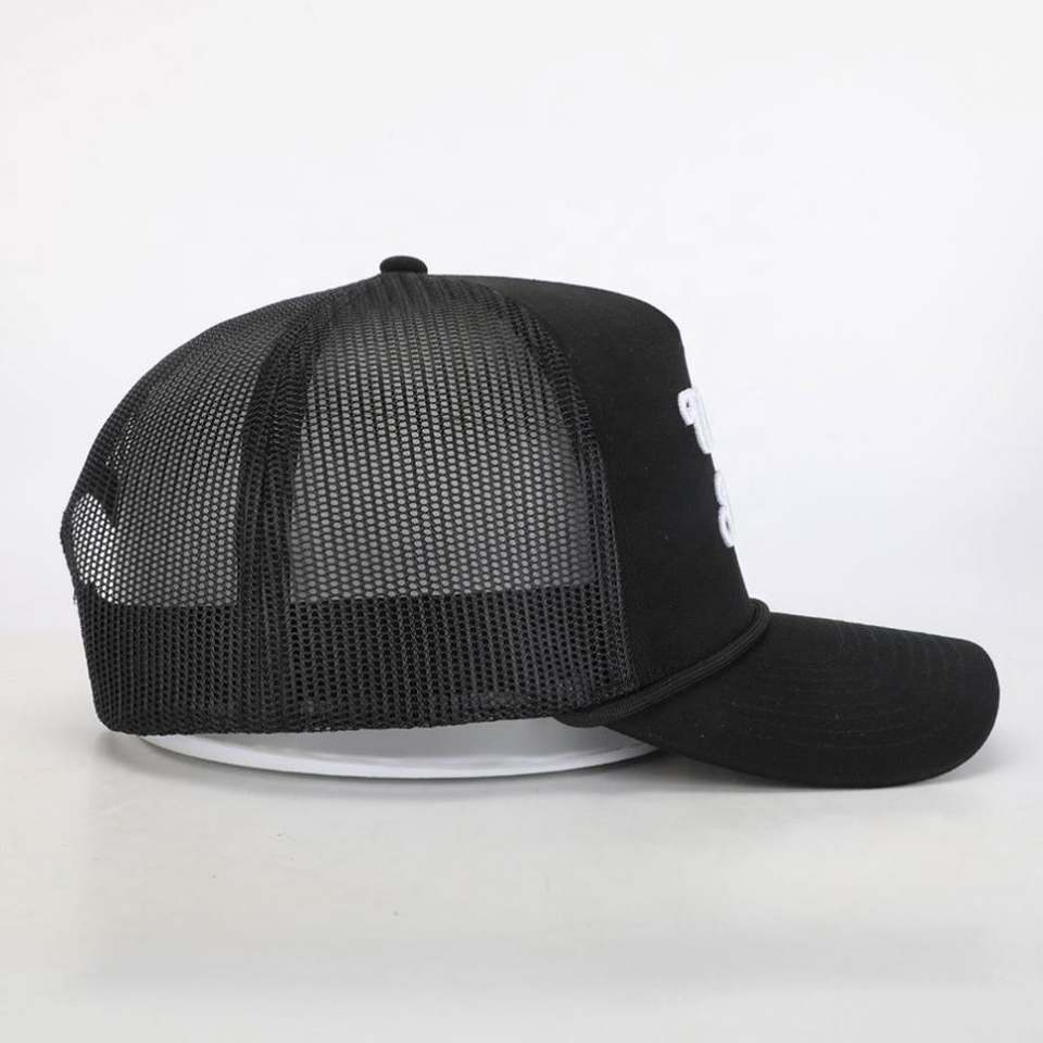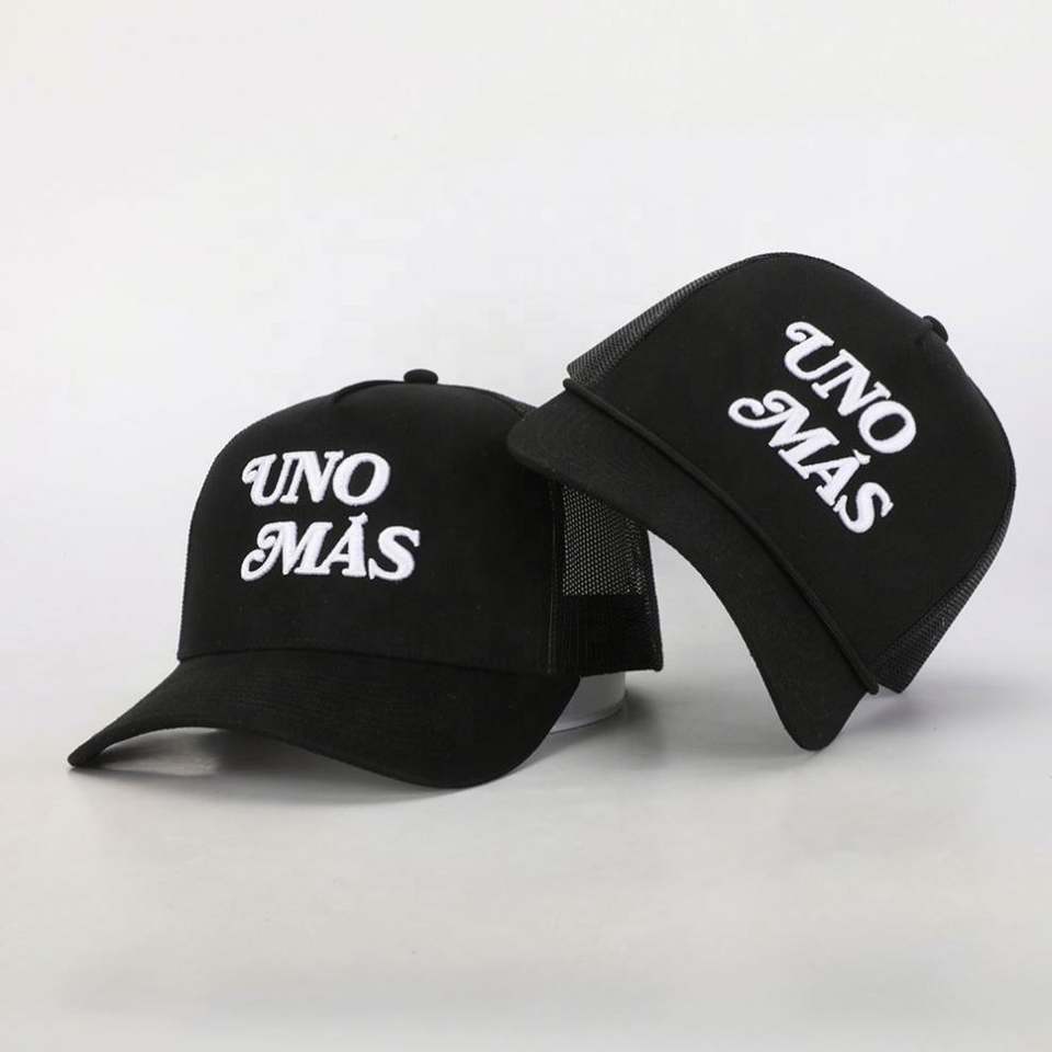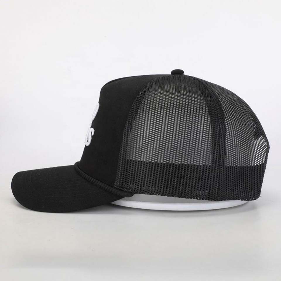 Casquette Trucker Unisexe Sportive 5 Panneaux en Corduroy/Toile Noire de Haute Qualité avec Logo Brodé Personnalisé BSCI, Vente en Gros, OEM